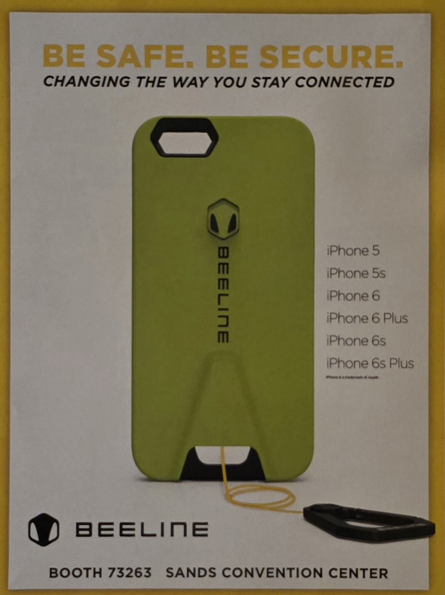 Ok, I found a company called “Beeline” that had a really useful phone case. It doesn’t sound as earth-shaking as personal direct control of an orbiting satellite’s camera, but in the real world, it’s useful. They built a phone case with a retractable cable and carabineer/clip on the other end of said cable. Clip it onto a belt loop, go into a bar and place your phone on that bar … you’re not going to go to the bathroom or leave without it! Or put your keys or anything you don’t want to take a chance of losing and it’s a life-saver. I wish I had it years earlier at a CES show when I set down my camera for a minute and it went home with a different owner.
